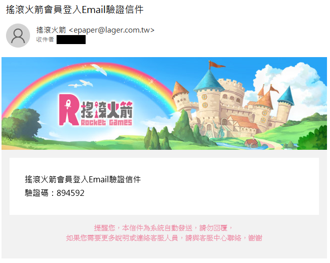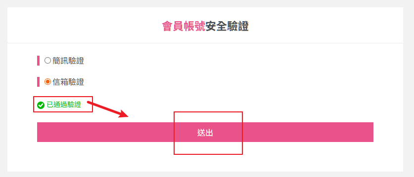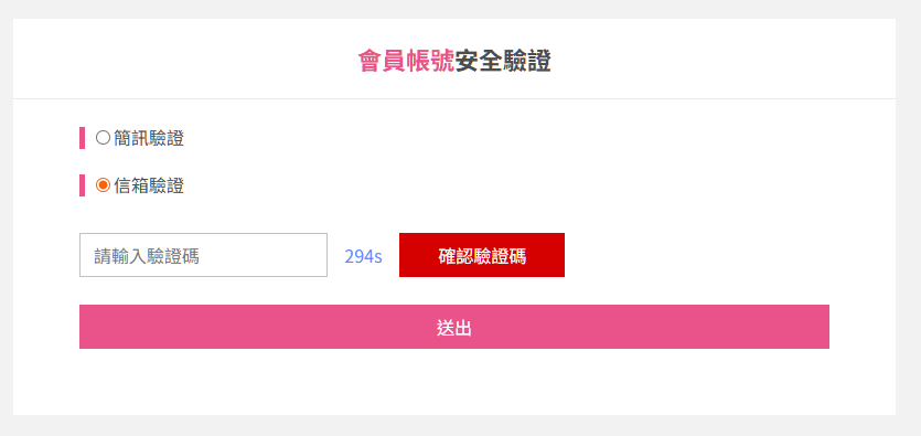 點選驗證後,信箱(手機),將會收到驗證碼訊息。